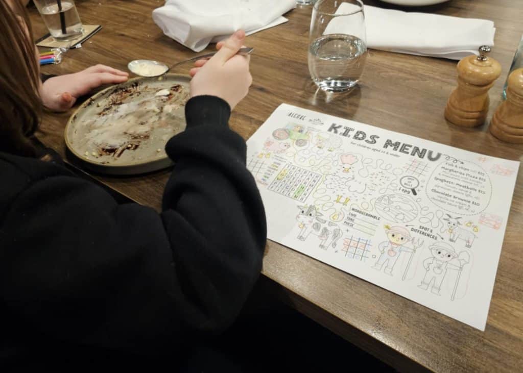 Got grandkids in tow? Children are well catered for and welcomed with a menu/colouring sheet.