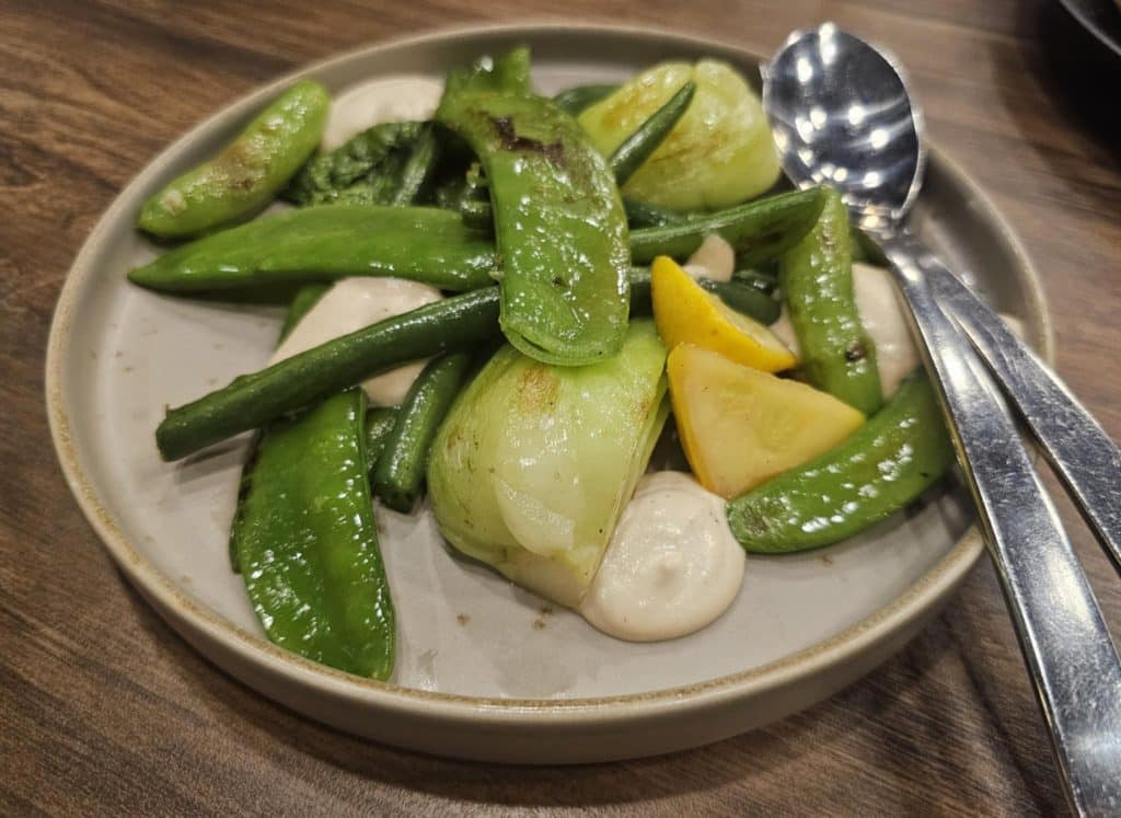 Sides were on offer include fried royal blue potatoes and sautéed Asian greens.