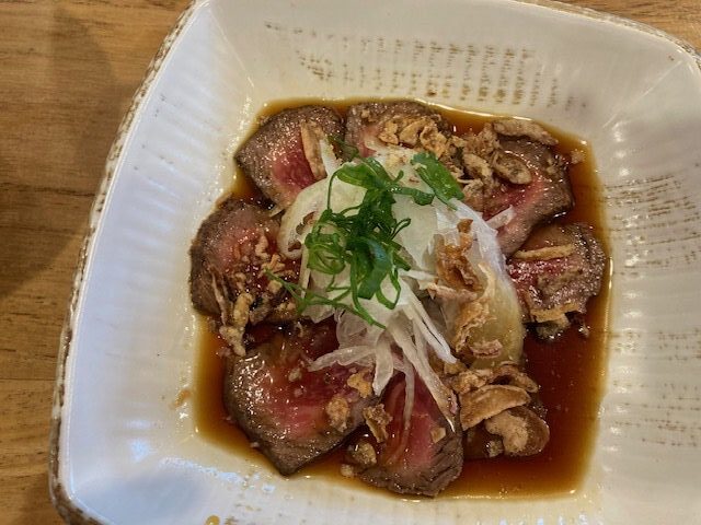 For this lunch we went for the Edamame beans ($13) – salty version – spicy is also available. It was very good and very fresh. Next up was the Wagyu Beef Tataki ($32). The beef itself with ponzu was excellent but the raw onions on top were not!