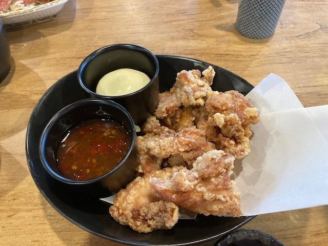 Our next order was the Karaage chicken – Japan’s answer to Kentucky Fried. The chicken was moist but very bland – Kaarage is normally marinated in soy, sake and mirin but I could detect no flavourings at all. The dish was saved by a sweet chill, in-house sauce that was excellent.