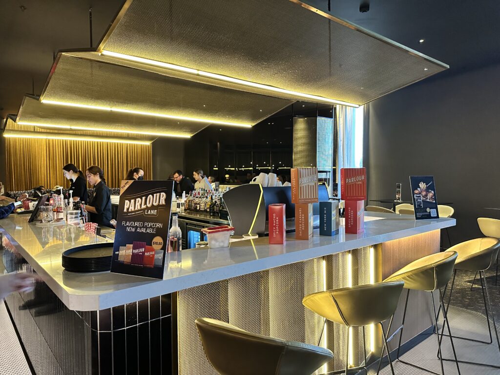 Instead of lining up at the main candy bar, you step into the dedicated Gold Class lounge – a quieter, more intimate space set apart from the hustle of the regular cinema foyer. Here you’ll find: