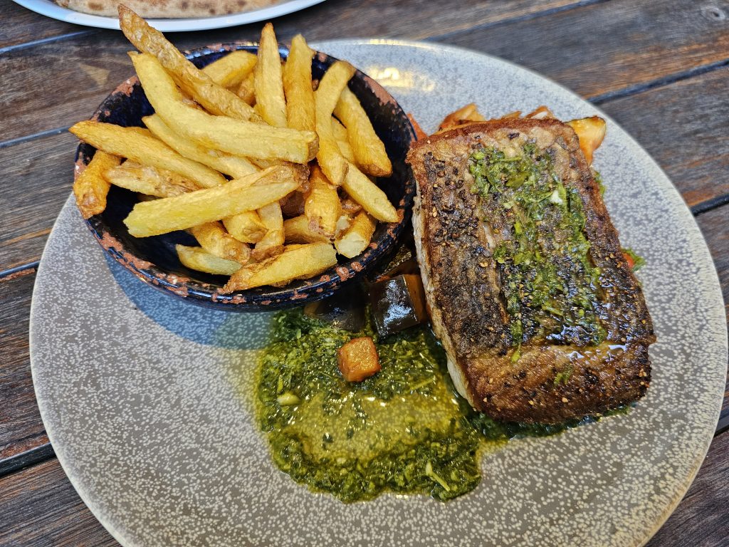 I enjoyed the fish of the day – a very tasty and perfectly cooked barramundi. Served with ratatouille and delicious chips.