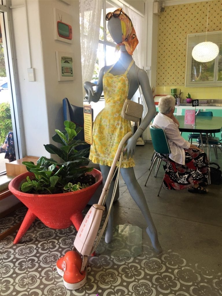 Families can relax and enjoy a meal while children play in a booth with their own kitchen, utensils, toys and books. My grandchildren were fascinated by the 1950’s model and the old hairdryer.