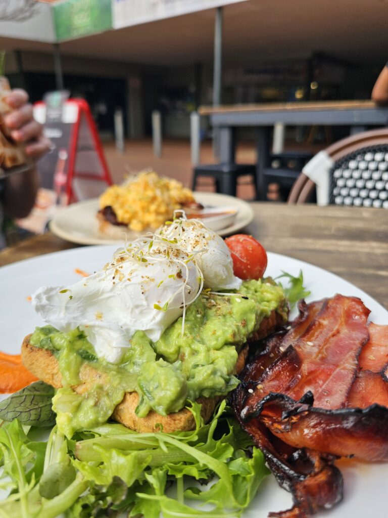 We tucked into creamy scrambled eggs, plus smashed avocado on gluten-free toast with a side of crisp bacon. Breakfast simple, fresh, and done right. The brunch line-up covers the classics, the staff are warm, and parking is right outside, which makes it an easy option if you prefer minimal walking between your car and cup of coffee.