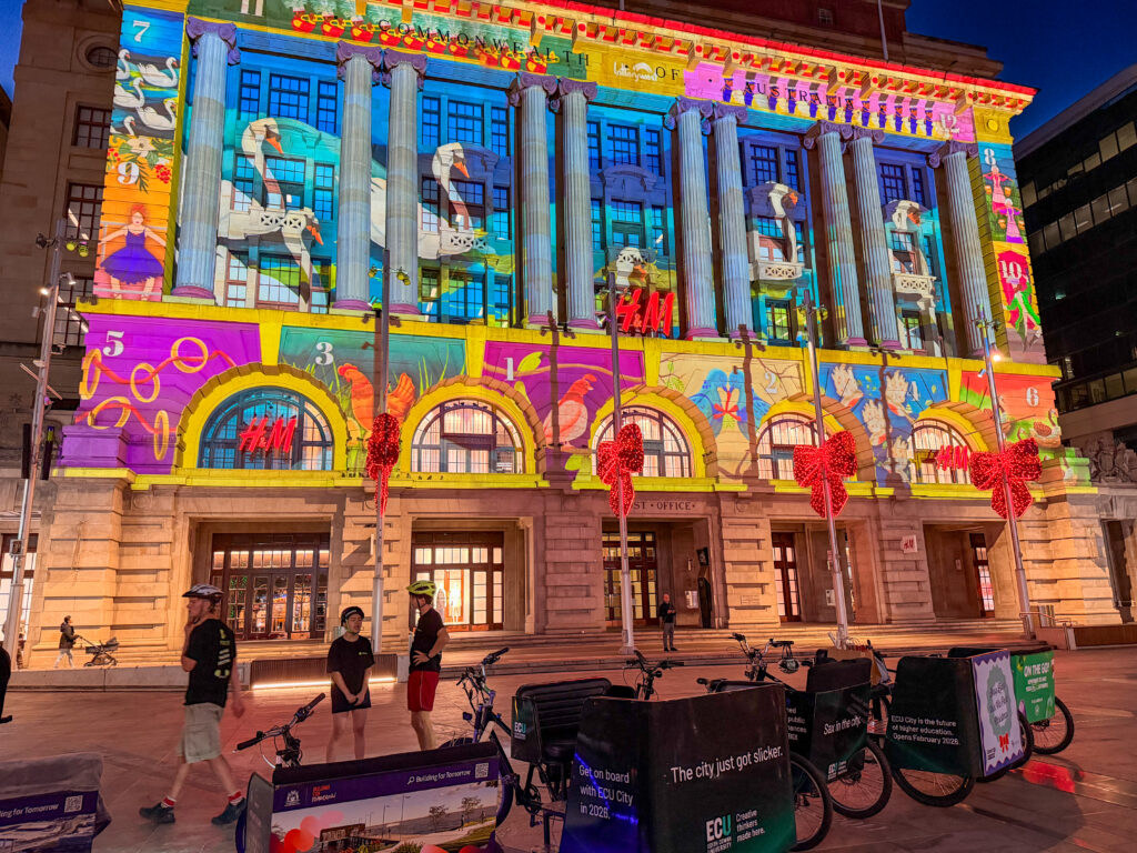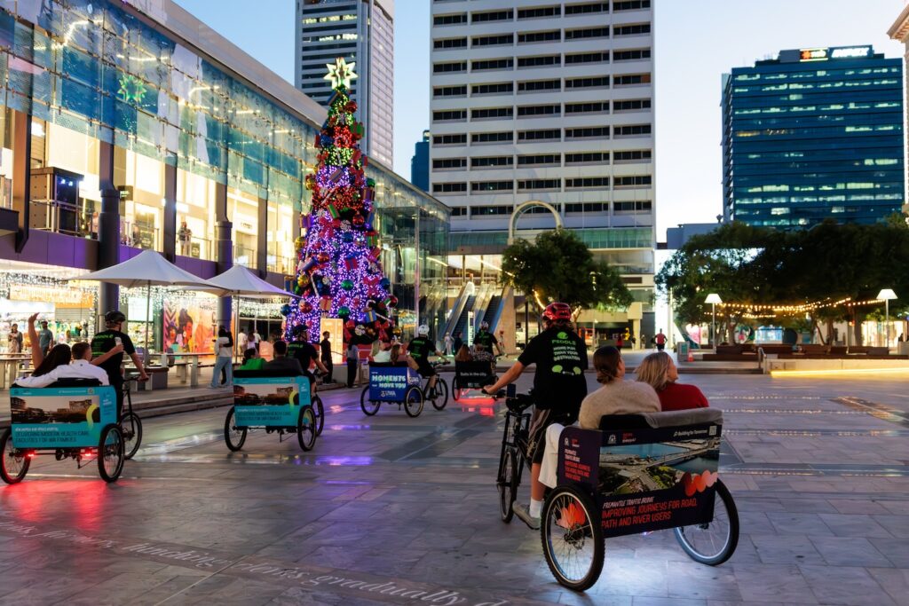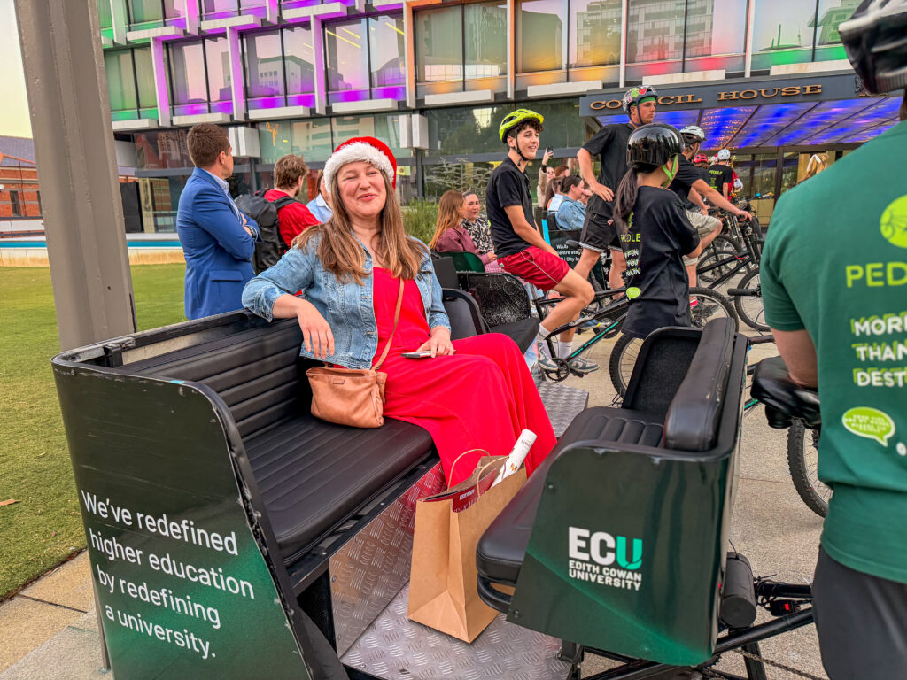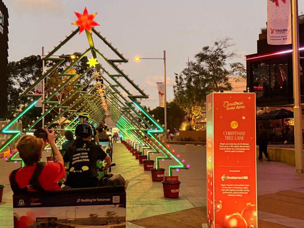 If wandering the full Perth Christmas Lights Trail on foot feels a bit much these days, Peddle Perth offers a wonderfully relaxed alternative. Instead of covering kilometres of city streets, you can sit back in a comfortable rickshaw “sleigh” while your rider does the pedalling and you simply enjoy the lights, music and atmosphere.