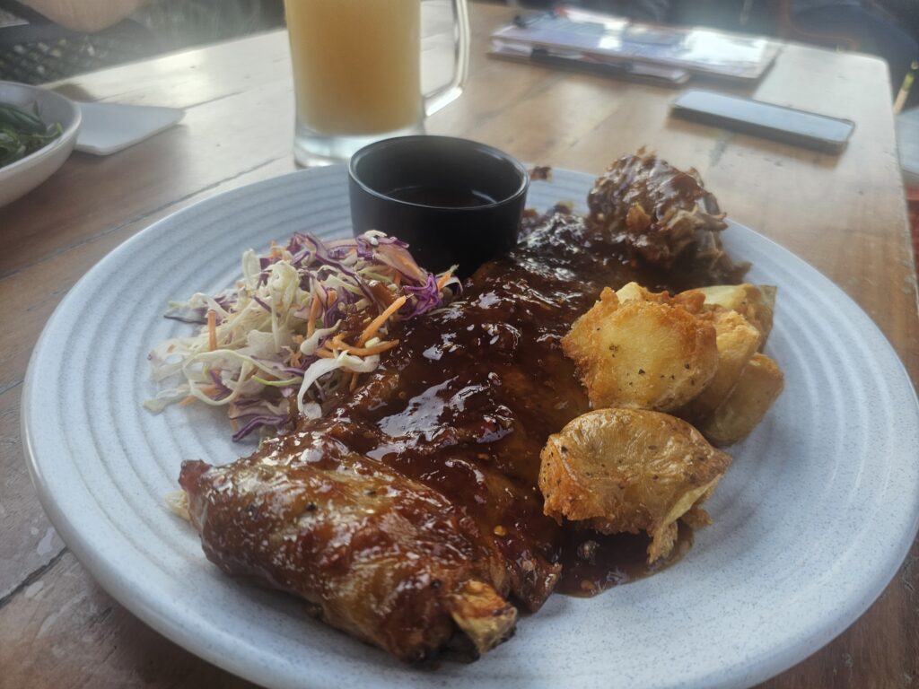 The food is much more than “just pub grub”. You’ll find good-quality, crowd-pleasing dishes that work well for both lunch and dinner. Portions are generous enough to share, or to linger over with a glass of wine. We enjoyed salt and pepper squid, and saucy BBQ ribs with crisp potatoes and slaw.