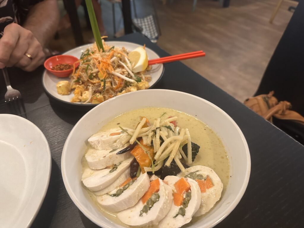 One standout we keep coming back for is the green chicken roulade—a beautifully put-together dish that’s packed with flavour and a little different from the standard Thai offerings you’ll see elsewhere. If you like green curry-style flavours, it’s a must-try.