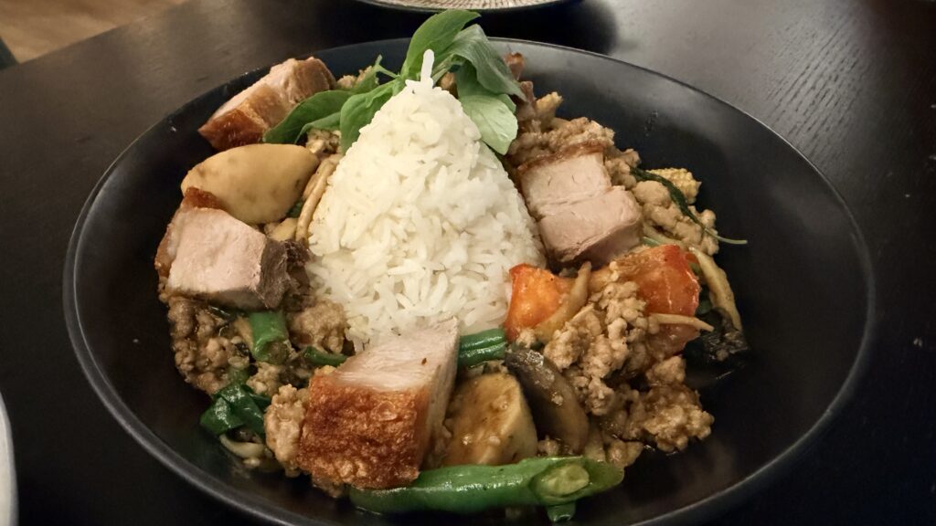 One standout we keep coming back for is the green chicken roulade—a beautifully put-together dish that’s packed with flavour and a little different from the standard Thai offerings you’ll see elsewhere. If you like green curry-style flavours, it’s a must-try.