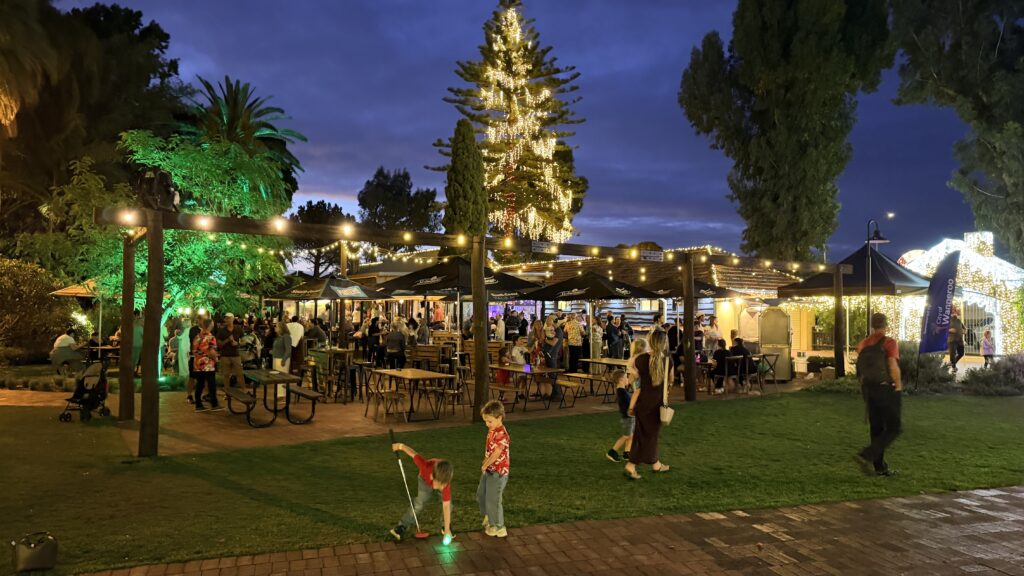 If you’re looking for a festive evening that feels truly special – twinkling lights, gentle “snow”, mini golf and easy dining all in one place – The Magic of Christmas at Wanneroo Botanic Gardens is a lovely option for a summer night out in Perth.