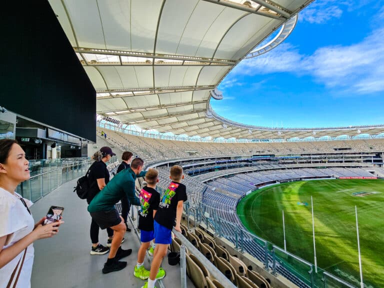 The Ozone Sky View Deck Tour is a great way to see Perth from a new perspective and learn a few behind-the-scenes secrets about Optus Stadium. For more information or to book, visit the Optus Stadium website.