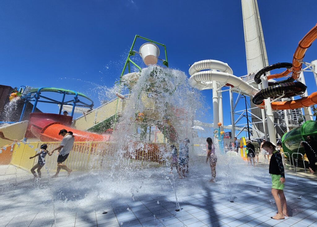 All ages, from toddler to teens will love the splash park (open seasonally). Featuring a giant tipping bucket, spraying water at regular intervals (always a crowd favourite), plenty of water sprayers, interactive water cannons and small slides too. There are a few steps involved, but the shallow play element is great for young children.
