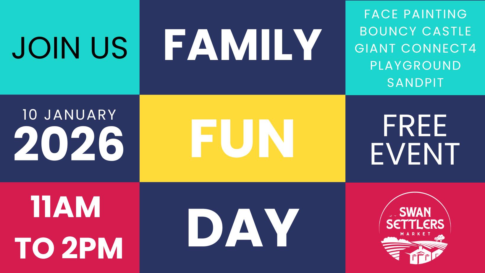 Family Fun Day – Summer School Holidays Swan Settlers Market When: Saturday, 10 January 2026Time: 11am – 2pmWhere: 124 Lennard St, Herne Hill School holidays sorted. Join us for a FREE Family Fun Day packed with colour, laughs, and summer vibes. Face paintingColouring stationsFoosballSandpit funPlayground timeBouncy castle While the kids play, grown-ups can have a go at axe throwing (paid). Stick […]