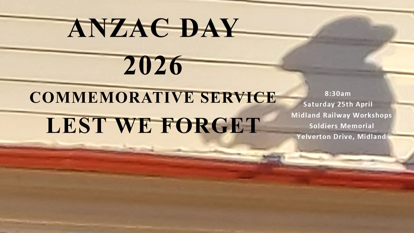 ANZAC Day Service Date: April 25, 2026 Time: 7:45 AM Location: Mt Lawley-Inglewood War Memorial (corner of Queens Crescent and Clifton Crescent, Mt Lawley) Sausage sizzle and coffee truck will be on site from 7:00 AM