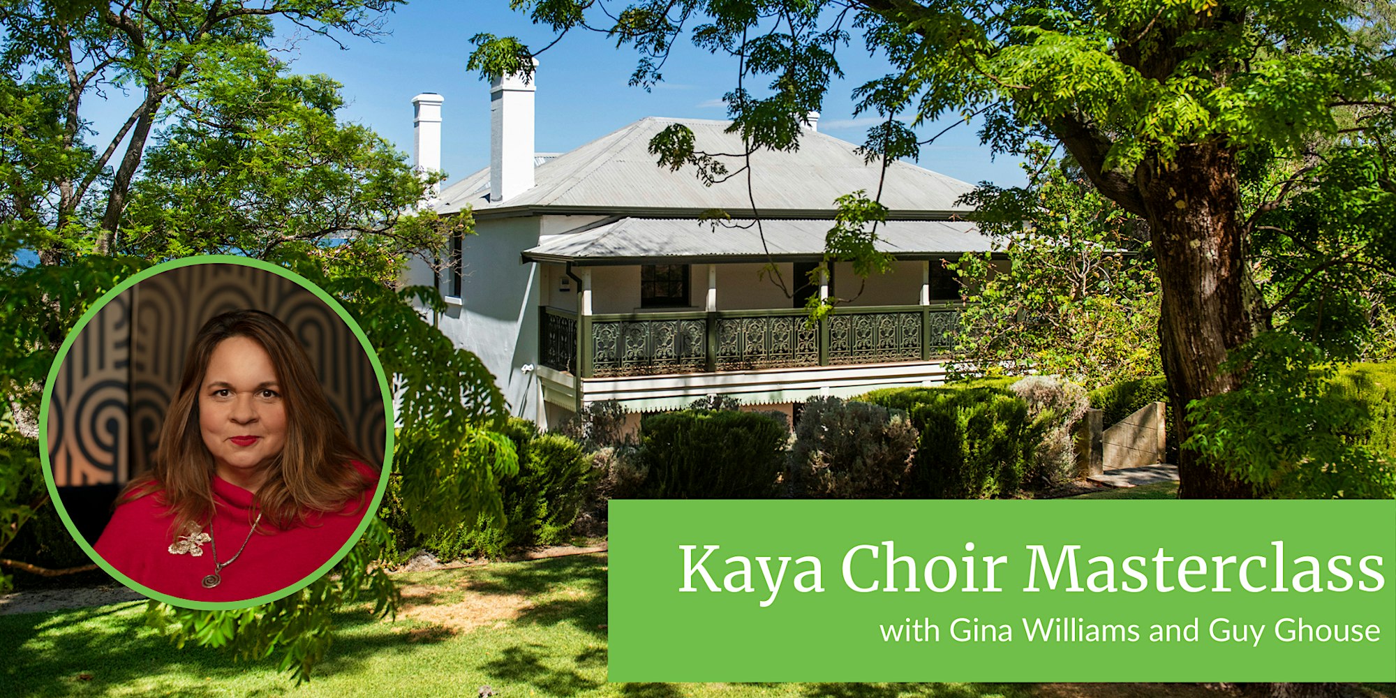 Join Gina and Guy in the grounds of the impressive Gallop House on Whadjuk Nyoongar Country overlooking Derbarl Yerrigan (Swan River) for a unique masterclass of singing in language followed by a performance of songs they have composed so far during their time as the 2025 Prelude Composer in Residence.