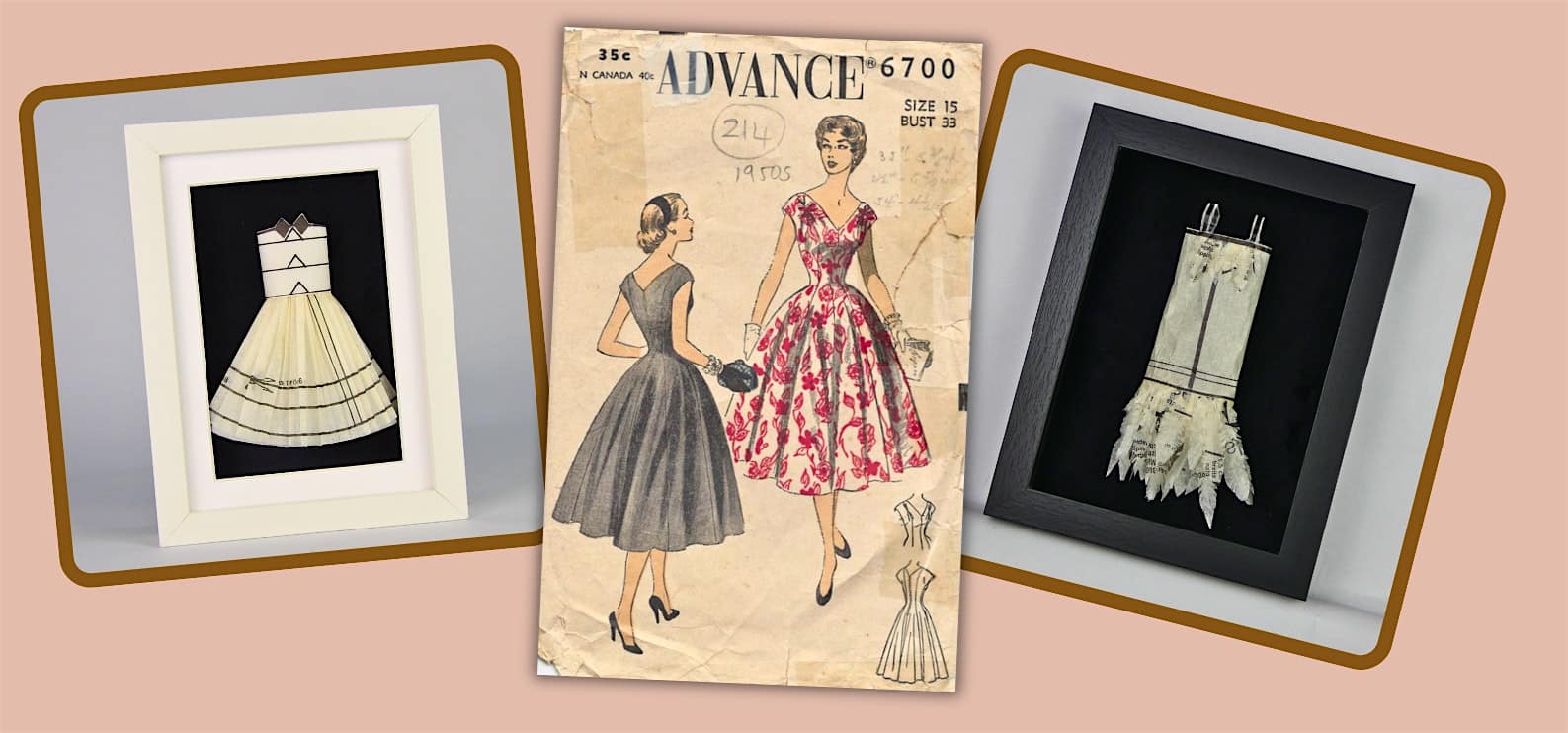 Have vintage sewing patterns tucked away at home? Bring them to life in this creative workshop! You’ll transform delicate paper patterns into a charming framed dress sculpture to take home and display.