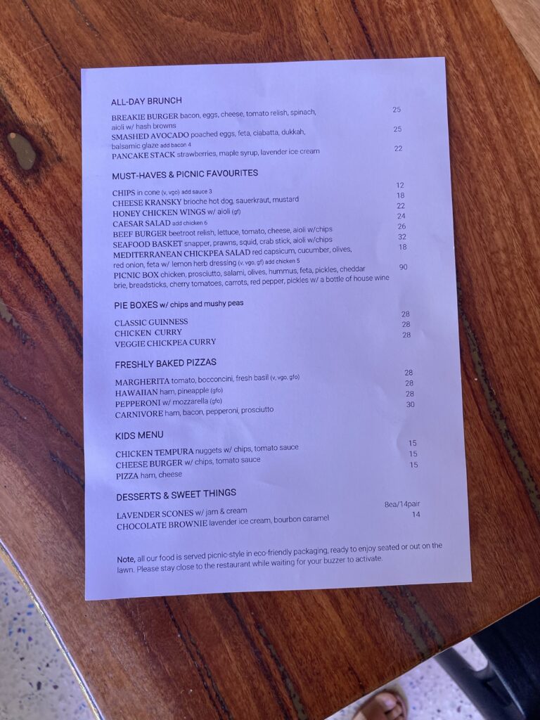 As everything is served takeaway‑style, you can choose any spot that suits, from the shaded deck to the open lawns by the lavender rows.